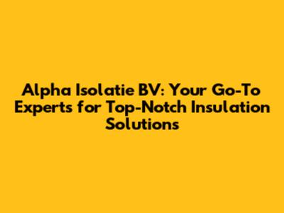 Alpha Isolatie BV: Experts In Insulation Solutions