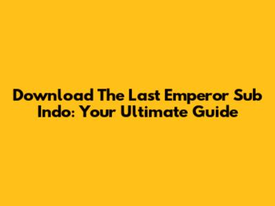 Enjoying 'The Last Emperor' with Sub Indo: Tips & Tricks