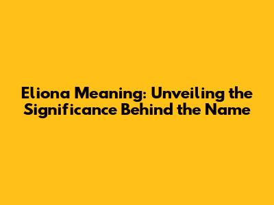 Eliona Meaning: Unveiling The Significance Behind The Name