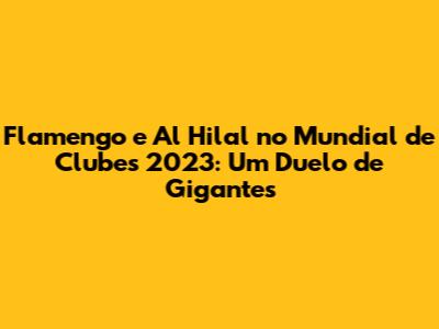 O confronto entre Flamengo e Al Hilal promete ser um dos mais emocionantes do Mundial de Clubes 2023. De um lado, o Flamengo, com sua força ofensiva e paixão da torcida; do outro, o Al Hilal, com sua organização tática e vontade de surpreender. Um jogo imperdível para os amantes do futebol!