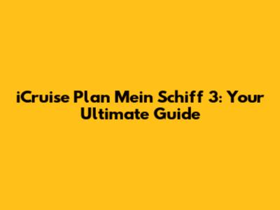 ICruise Plan Mein Schiff 3: Your Ultimate Guide