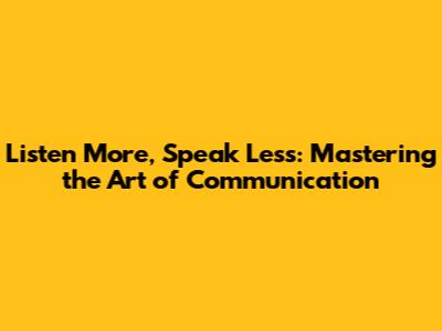 Listen More, Speak Less: Mastering The Art Of Communication