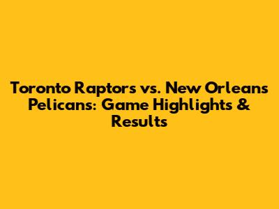 Raptors Vs. Pelicans: Game Highlights & Results