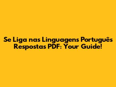 Se Liga Nas Linguagens Português Respostas PDF: Your Guide!